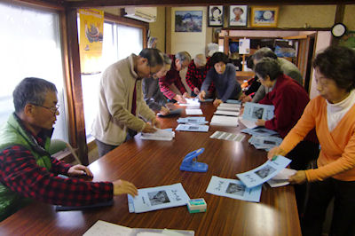 | 機関誌《コッヘル3月号》印刷製本 今日は大勢で早く出来上がりました | 県連《山の写真展》 への準備 お茶タイム (桃カステラ・饅頭・あんこ餅御馳走さまでした) |