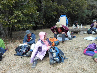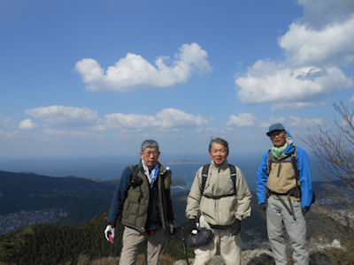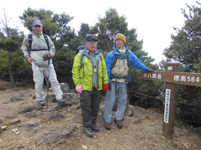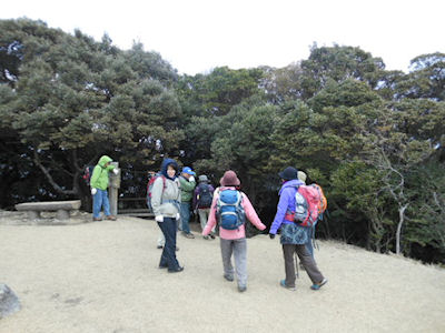 | ★ コース・その他 松本さんから画像・コメントが送られてきました 岬道を変更 新地ターミナル発(8:33)==バス==元宮公園着(9:00)--寺岳登山口(9:28)--休(10:10〜16)--寺岳着(10:20) 乙女峠着(11:15)〜昼食〜発(11:45)--小八郎岳着(12:02)--熊ヶ峰--戸町岳着(14:26)--上戸町--戸町中前着(15:40)解散 ・雲仙、多良岳、天草までの眺めは最高であったが、帽子を飛ばされる北西の強風で寒かった。 ・熊ヶ峰から戸町岳の途中、尾根道で行き止まり?途中の標識まで戻ったが、道路の工事で旧尾根道がなくなったようだ。 (標識に素直に従えば良かった) ・八郎岳〜戸町岳はアップダウンの繰り返しできつかったが、コースの途中にはビュースポットが多くあり、長崎のいろんな景色が楽しめ 何度来ても飽きない山だ。 |