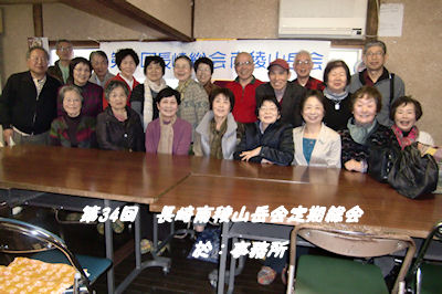 | 県連理事長のお祝いメッセージを田中信子さんが代読して始まり、その後 総会議事はスムーズに運ばれました。 11年度の反省にたち、12年度の会活動があつく語られました。 その後会場を長崎バスココウオークに移し《アレッタ》で懇親会 |