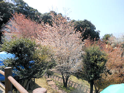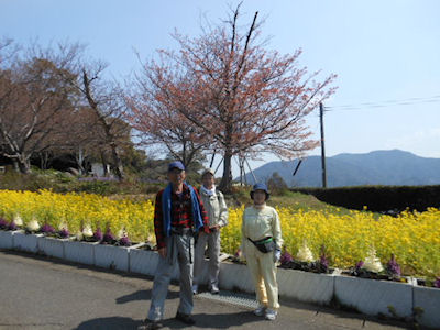 | 桜は三部咲き | 崎野公園入口の菜の花と桜 |