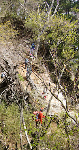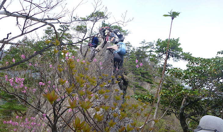 | このコースの難所のひとつ 鹿の背 (先回は右横下に梯子が取りつけてあったけど・・・) | |||