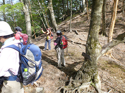 | 山頂の夏木山 | 下りは夏木新道を直下降 |