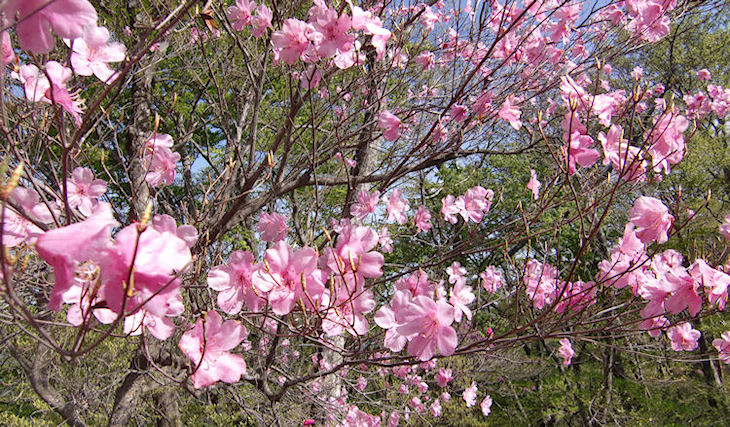 | 手に届くところにアケボノツツジ | 仰ぐと満開のアケボノツツジ |