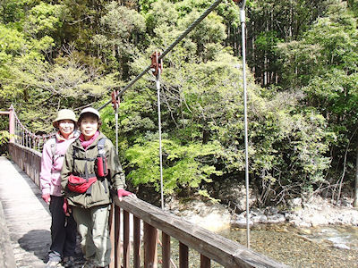 | ★ コース・その他 3名 バンガローから少し歩いたら橋がありそこで延岡の森林協会の人に出会い、自然の森散策に連れて行ってもらいました。 |