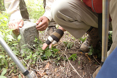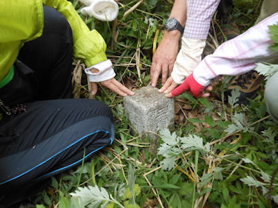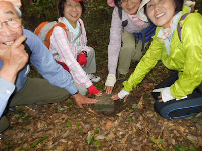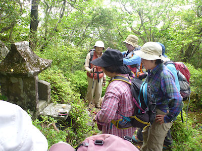 | 登山道を彩るミヤマキリシマ・ウツキ | 隠れキリシタン跡(カニの台座がそれと思わせる) | |