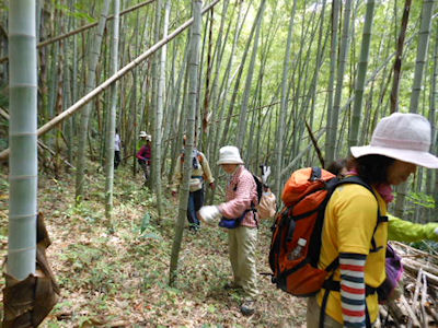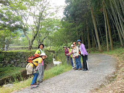 | 健山から七面山への竹林の道 | 七面山のやぎさんとハイポーズ |
