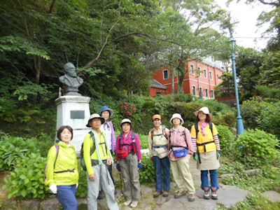 | ★ 参加者 L松本 久保ヒ・久保ク・松尾ア・前田・井上・林田・今岡 会員 8 名 ★ コース・その他 松本さんより画像・コメントが送られてきました 新中川町電停発(9:03)--春徳寺--城の古趾--(10:30)--片渕中--八気山--健山(10:30)--七面山妙光寺(11:20)〜昼食-- シーボルト記念館(12:40)--諏訪神社電停前(13:00) 解散 春徳寺(トードス・オスサントス教会跡)、城の古趾(長崎甚左衛門の居城跡)シーボルト記念館の「長崎の歴史をさるいて」 |