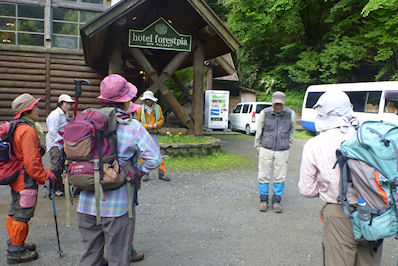 | ガイドの秋本さんと朝のご挨拶 | すぐに向坂山 |