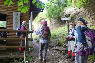 | ミズメの木 樹皮を剥ぐと鎮痛剤サロメチールの匂いが | 内ノ八重登山口に到着 冷たい烏龍茶をご馳走になりました |