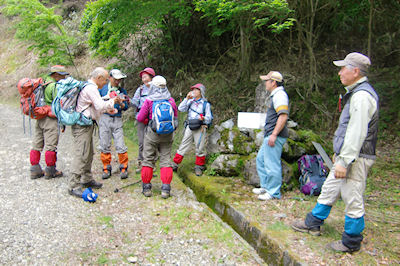 | 馬つなぎ場で昼食 秋本さんがコーヒーのご馳走 | 霧立越駄賃付け唄を披露して下さいました |