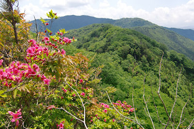 | やせ尾根に咲くシャクナゲ | ミツバツツジ |