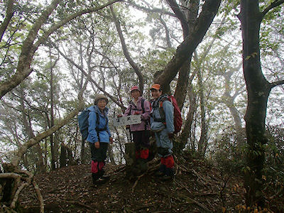 | 高岳(771.1m)山頂の三等三角点 | 狭い高岳山頂 周囲はサンショの木で | |