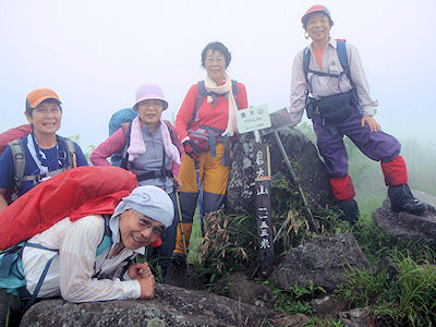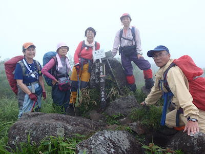 | ★ 参加者 L田中オ 久保ヒ・吉田・中ノ瀬・前田・松尾ア 会員 6 名 ★ コース・その他 6/ 9 長崎発7:15〜湯布院インター9:30〜駐車場10:05〜倉木山山頂11:45-昼食ー12:10発〜駐車場13:45 飯田高原山荘 泊 雨の中湯布院へ 「登山は中止ね」と言いながらも雨具を着けて歩き始める 足元が滑るので往復とも山腹廻りを選択ガスで 展望も利かないし早々に下山し 3時ごろには山荘着 |