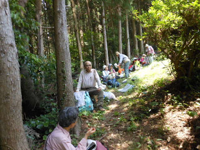 | クリーン登山開始 | 船石岳の登山口で昼食 |