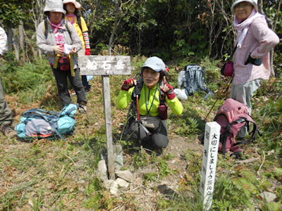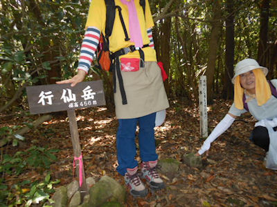 | 行仙岳の三角点(四等)にタッチ | 船石岳三角点(一等)にハイポーズ |