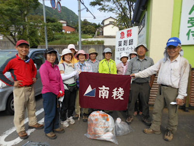 | 船石岳で皆 達成感の笑顔 | クリーンハイクの成果は7.5kgでした |