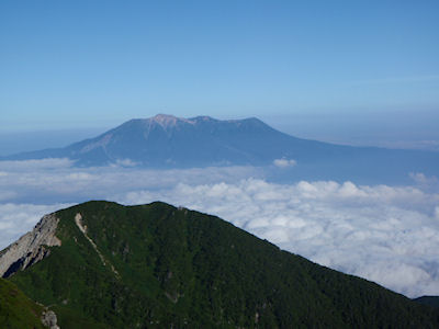 | 木曾駒ケ岳山頂 | 雲海の中の御嶽山 |