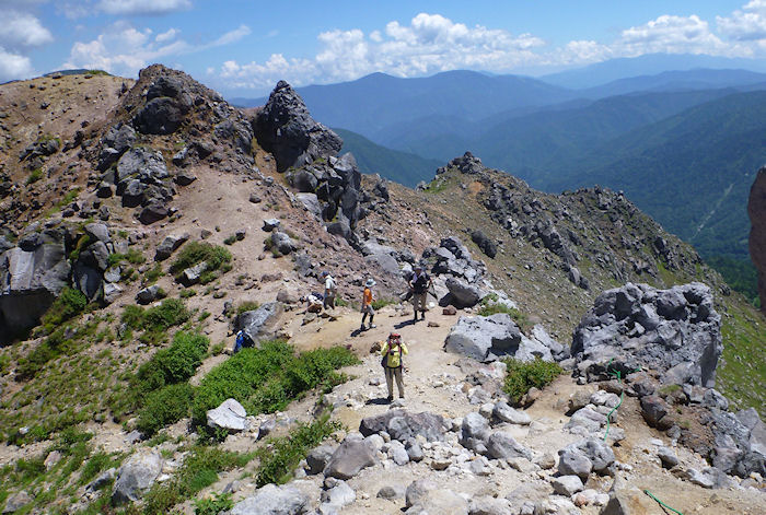 | 左天狗原 右上高地が見えました 鎖・梯子が終わりほっと | |