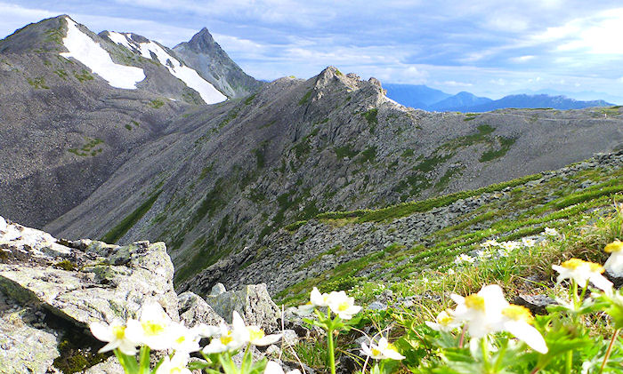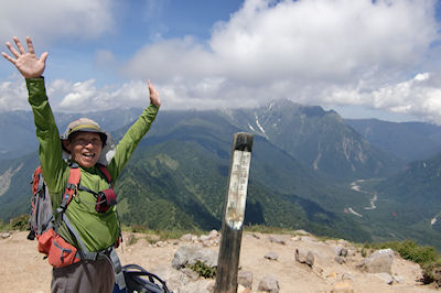 | 1日コースとしてゆっくりで行けるコース。 展望良しで百名山に数えられる由縁でしょうか 右奥方に西穂山荘が見えました | |