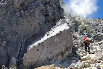 | 焼岳直下 まだ水蒸気が上がっています | 焼岳山頂 穂高・乗鞍・霞沢と展望抜群 |