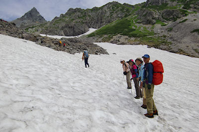 | 槍がデーンと 今年はかなりの雪渓が残っていました | |