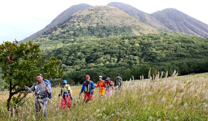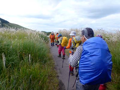 | ★ 参加者 L田中オ 酒井マ・酒井ミ・松本・松尾ノ・前田・林田・井上 会員 8 名 一般1名 (島田) ★ コース・その他 1日目 長者原出発(11:10)~指山(13:00~13:20)~長者原・雨ケ池分岐(14:35)~長者原着(15:35)~飯田高原山荘着 2日目 飯田高原山荘発~阿蘇草千里発(10:00)~時計回りで烏帽子岳(11:15~11:40)~草千里~駐車場(12:40) ★ 参加者 L Tao Kazu Masa Min Ino Haya Matumo Matuo 一般Shimada ★ 主な報告 ・危ぶまれた天候もたいしたことなく山行ができました。 1日目は長者原で小雨、歩き出すと止み雨具を脱ぐ、指山山頂はミヤマキリシマの群落で来季の山行が期待できそう 下山後、鉄分の多い筌ノ口温泉でゆっくり 、Tanakaさん知り合いの飯田高原山荘で自炊 美味しいすき焼きに美味しいお酒が飲めました ・翌朝はゆっくりです、外輪山に囲まれた田園・やまなみを見ながら阿蘇に移動し、草千里から時計回りに烏帽子岳へ。 帰りは大津温泉へ |