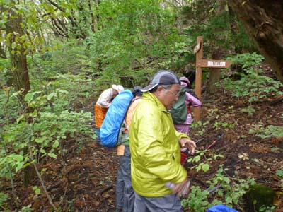 | 長者原から取り付きます | 指山・雨ケ池分岐 雨が止み衣服の調整 |