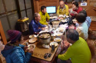 | 美味しいすき焼きにお酒がすすみ11時まで山談義 Chiekoさん手作りレーズンケーキにMatuo・ノさんのブラックコーヒーが合います | |