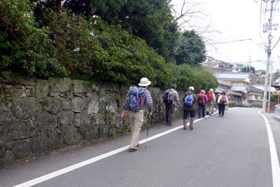 | ★ コース・その他 長崎発(9:00)=車=寿古着(9:50)発(10:00)--松原宿--千綿宿--鹿の島(11:30) 〜 昼食〜発(12:20)--大村湾沿いの道--寿古(松本農園)着(13:00)〜じゃがいも植え〜==車==長崎着(16:30) 〜じゃがいも植え〜==車==長崎着(16:30) ★ 主な報告 ・快晴のぽかぽか陽気の中、長崎街道。松原宿〜千綿宿(鹿の島)まで歩く。 ・松原宿に入るとすぐに松原おこしの店で、へこはずし(おこし)をおやつとおみやげに購入。 庄屋跡(現在:松原小学校)の横を通過し鎌と包丁の製作所 (田中鎌工業所(農家民宿でもある)を見学。 松原ひな祭でたくさんのおひな様や旅の駕篭が展示してある旧松屋旅館の中に入る。 旅館は天井が低い。2階から 街道をゆく人がま近に見え江戸時代にタイムトリップしたような気分になる。 ・松原八幡神社に立ち寄る。境内の一角に松原村出身の「田崎真珠」創業者の碑が立っていた。 又、松原は相撲が盛んな地であったとかで立派な相撲の土俵がある。 ・千綿宿の鹿の島の海岸で大村湾のしおかぜの中で昼食し、寿古(農園)に戻る。 ・じゃがいも植えでは「デジマ」を75個、「男爵」を30個をみんな「ワイワイ」「ガヤガヤ」植える。 畑の周辺のツワやホウレンソウ、春菊、ネギ、菜の花などを収穫する。 ・いつもとは、少し違う「友遊山行」を満喫した。 |