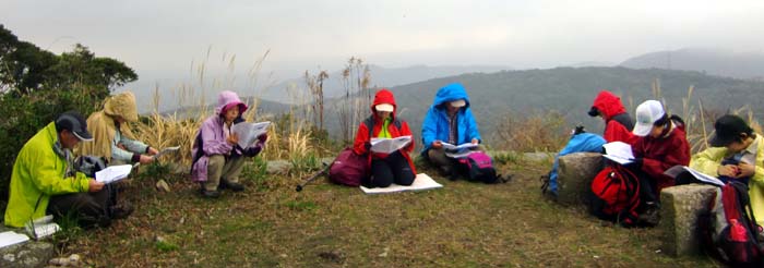 | 金毘羅山直下で田中さんより地図・コンパスの座学 | |