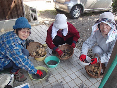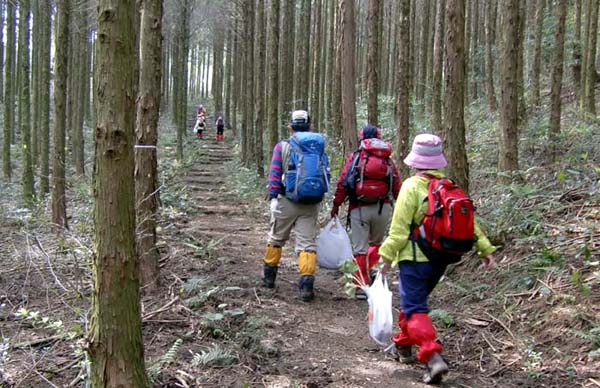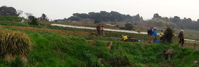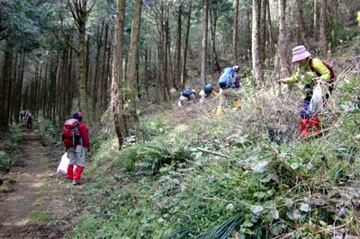 | Nakanose・Kazuちゃんのホイッスルの合図で一斉にツワ採り | |