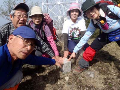 | 山頂直下に春欄 | 三角点タッチ |