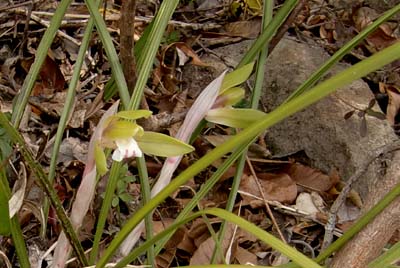 ★ 参加者 L久保ヒ・田中オ・井川ノ・久保ク・酒井マ・酒井ミ・中村 会員 7 名 ★ コース・その他 2日 長崎多良見発(13:00)==熊本 子別れ峠経由(この線はつづら折れの気を抜けない狭い道路) 五木久連子着(5:00)=久連子テント泊 3日 4時半起床 久連子テント場発(6:10) 登山口出発6:45〜岩宇土山(9:00)〜林道(9:40〜上福根山(10:40) 下山開始(10:55)〜林道で昼食()おこば谷分岐〜福寿草群生地〜登山口着(14:30) 平家の里・二本杉峠経由で帰る 佐俣の湯で入浴 松橋より高速へ ・久連子の里でテント2張り、水あり、トイレは電気がつき、テント場にはいい場所、持寄りの夕食 8時には就寝 ・登り始めと同時に前の人の靴裏が見えるほどの急登、最後までこの調子、林道に出ると山頂周辺は真っ白、霧氷がしっかりついている (田中さんが 冬の桜 と表現) ・おこば谷は水害・崩落で登山道は荒れ、急下降の連続で膝が笑う、でも福寿草は期待を裏切らなかった あたり一面の福寿草 自分の足で登らなくてはこの感動は味わえないものだった |