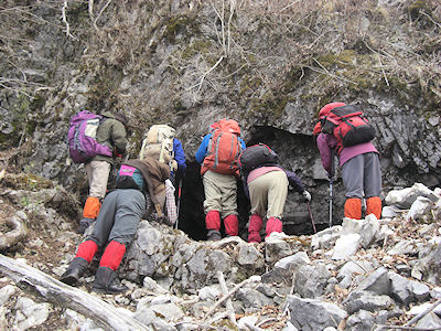 | 鍾乳洞を覗きこむ 今回は氷はなく | |