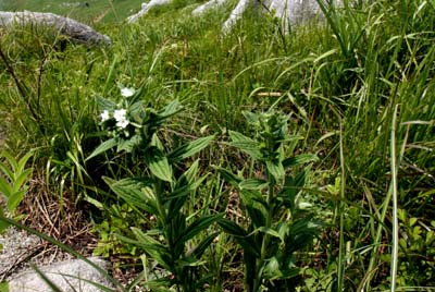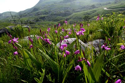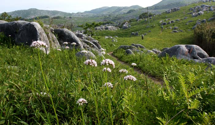 | 石灰岩の羊群原 手前の花サワヒヨドリ | |||||