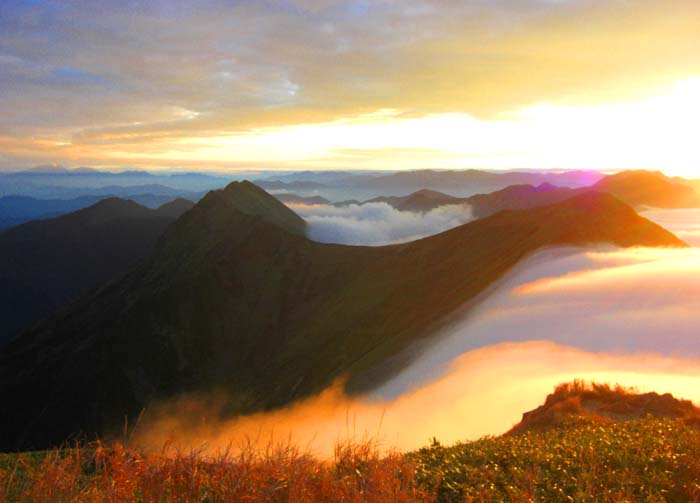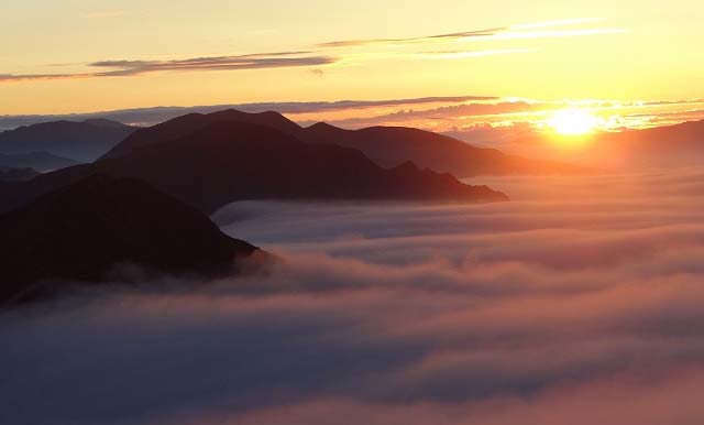 | 万太郎山方面へかかる雲海 Kunikoさん撮影 | ||