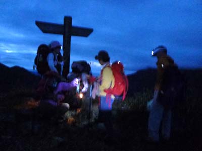 | 早朝4時発 七ツ小屋山山頂 | 清水峠に着きました |
