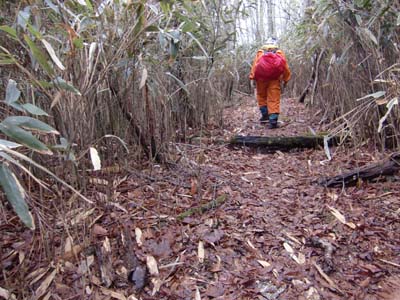| 黒原分岐で再びコンパスを当てる | トップを引く田中さん |