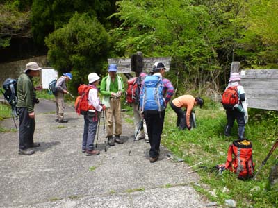 | 岸川饅頭を食べて出発です | 岸川登山口 |