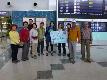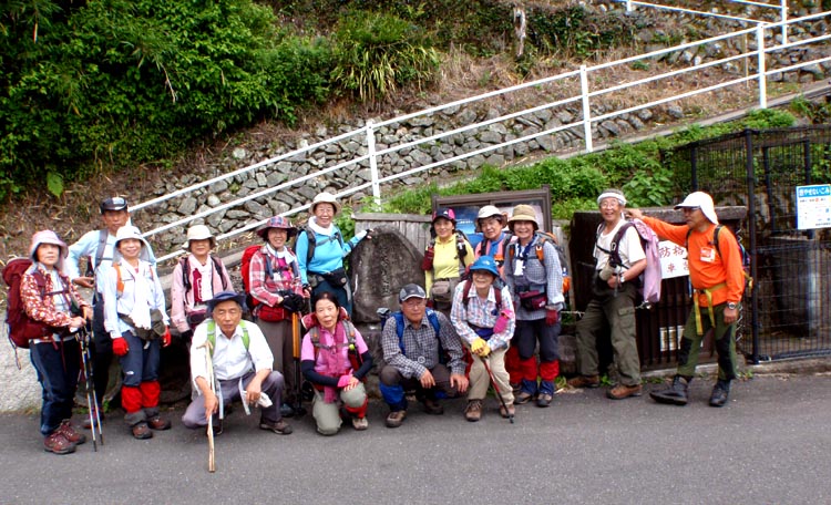 | 福岡空港でお迎え 井川キさんの妹さん作りの歓迎カード | 牧の戸登山口 準備運動後出発です |