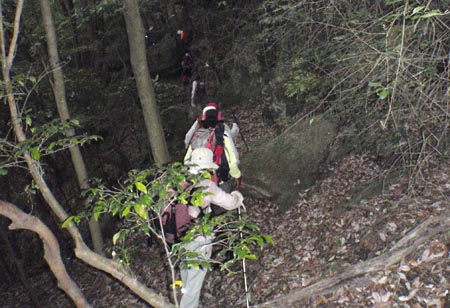 | 牧の戸登山口着 整理運動を | 飯田高原の山荘で自炊 |