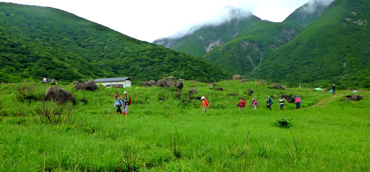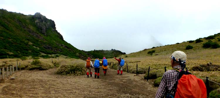| 久保ク・石井・宮崎さんの3人は左手の星生山(1762m)へ 西千里ケ浜 井川キさん指差す方 | |