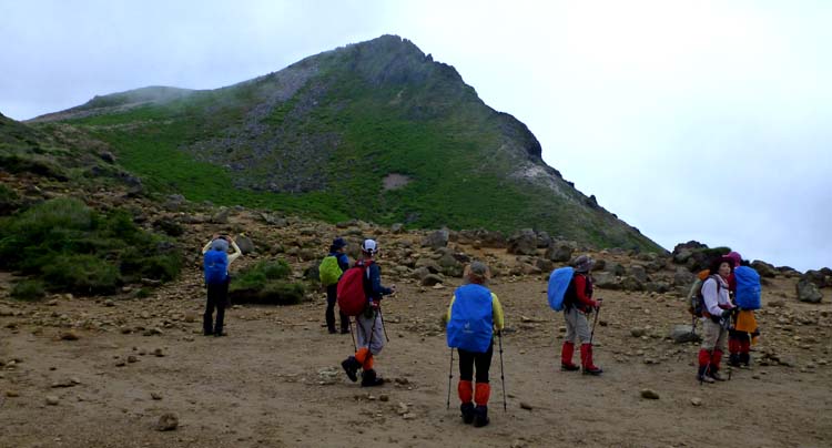 | 避難小屋まで下ると久住山の山頂が顔を出す |