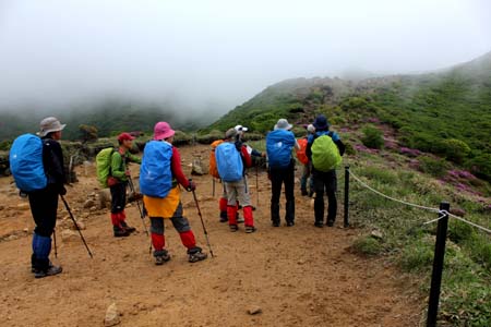 | 山頂はガスッて展望なし | ハイ 綺麗どころです |