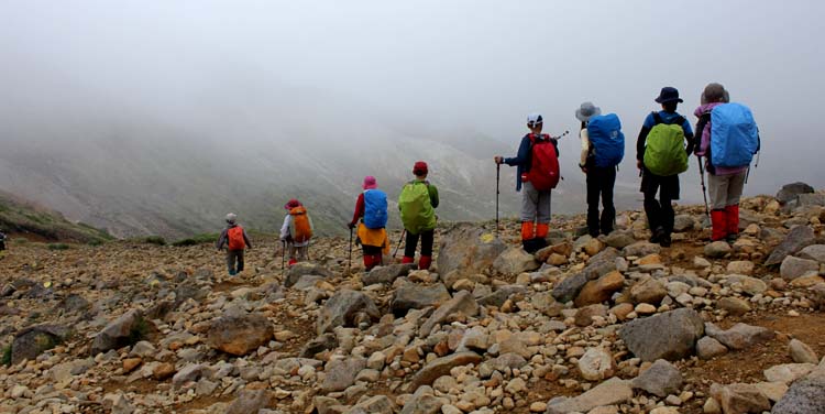 | 平尾入口を出発 | 帆場岳のアザミ |