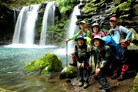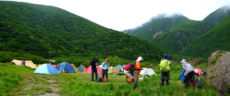 | ★ コース 1日目 牧の戸発(12:20)~沓掛山(12:55)~くじゅう別れ(14:30)~ 久住山(14:15)~くじゅう別れ(15:40)~沓掛山(17:05)~ 牧の戸登山口駐車場着(17:50) 2日目 吉部登山口発(7:10)~平治岳(10:10)~大戸越し~ 坊がつる(12:15)~暮雨の滝(13:40)~吉部登山口駐車場(14:25) ★ 参加者 L田中 前田・酒井マ・酒井ミ・井川キ・久保ヒ・久保ク・松尾ノ 会員8名 一般2名 石井・宮崎さん(昨年ジャン組(田中・久保ヒ・井川キ)が ジャンダルムで一緒だった東京の女性との交流があり、今回くじゅうで一緒に登ろうという企画でした |