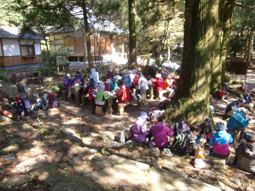 L 井川キ 田中オ・泉・酒井マ・酒井ミ・久保ヒ・久保ク・中村・松尾ノ・木田 県連女性部が金泉寺に集まり交流を深めました オレンジハイキングクラブ・朝霧山の会・あゆみハイキングクラブ・カルチャー山の会・東部勤労者山岳会・ヘバルナ山の会・南稜山岳会 午後から金泉寺は冷たい風が吹き、防寒具の用意が十分ではなく震えました |