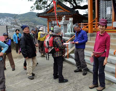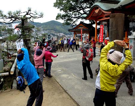 | 若宮神社で整理体操 | 完歩証の交付 |