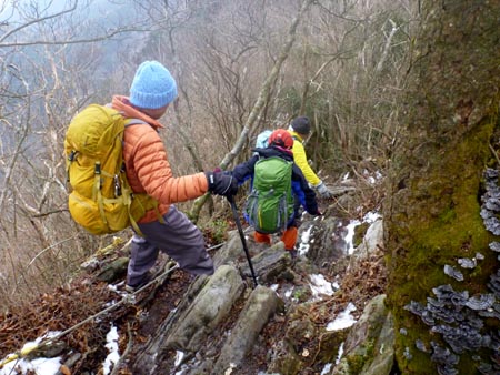 | 多良岳 | このコースは滑落事故のあったとこ 鞍部に向けて慎重に下る |