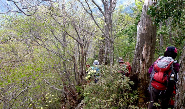 | 雁俣山からの痩せ尾根にはヒカゲツツジが色よく | |